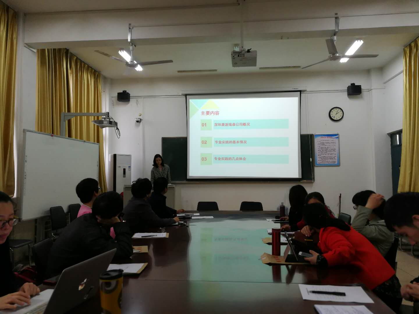 2018年4月12日,2018年寒假教师实践能力提升考核会议在1410举行,公司实践能力提升考核领导小组成员和参加寒假实践能力提升的老师参加会议。