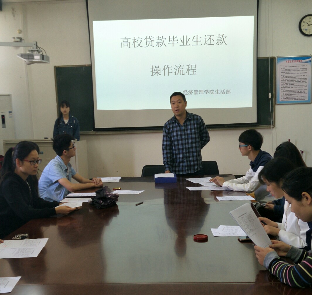 为进一步做好国家助学贷款工作,加强毕业生的诚信意识和社会责任感,谈球吧于4月28日在1410教室召开2017年贷款毕业生诚信还款交流会,负责助学贷款工作的张磊老师和部分助学贷款的毕业生参加了此次会议。