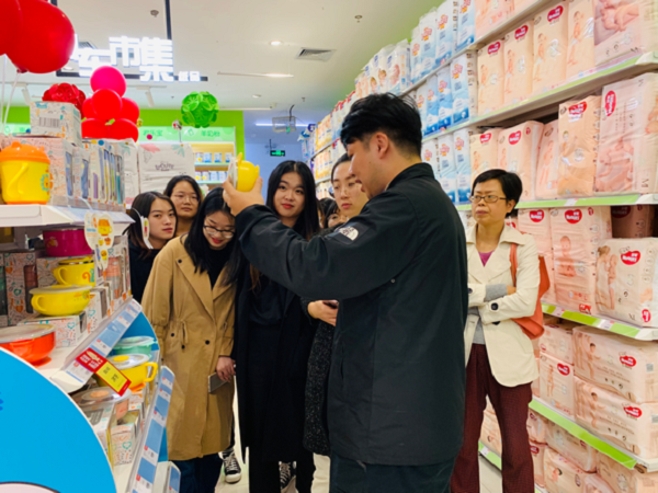 在苏宁红孩子万达店内,店长针对店内的基本情况、商品信息以及如何满足消费者多样化需求等问题进行了讲解,在参观过程中,同学们认真倾听,认真学习。