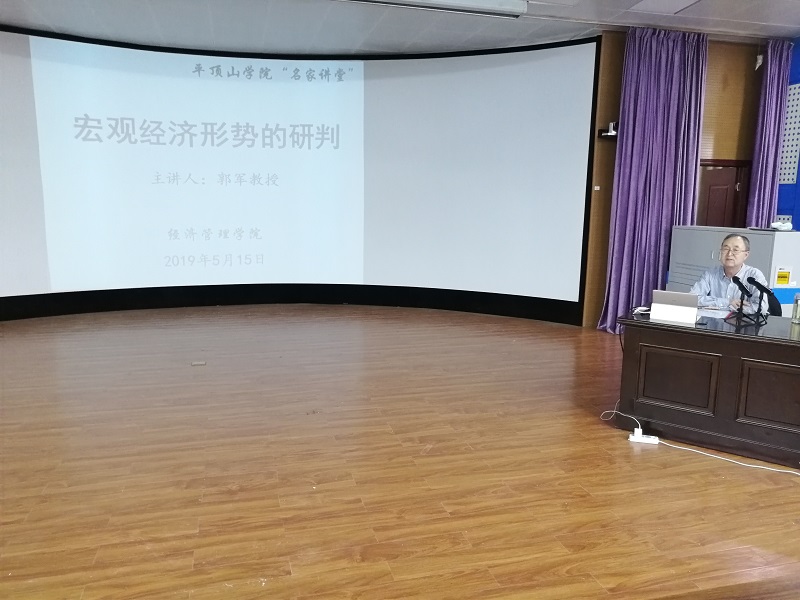 5月15日下午,河南财经政法大学河南经济研究中心、河南经济与社会发展研究院首席专家郭军教授应邀前来公司,作了一场题为《宏观经济形势研判》的学术报告。谈球吧经理周占伟主持报告会,副董事长张久铭及公司二百余名师生在2106教室共同聆听了这场精彩的报告。