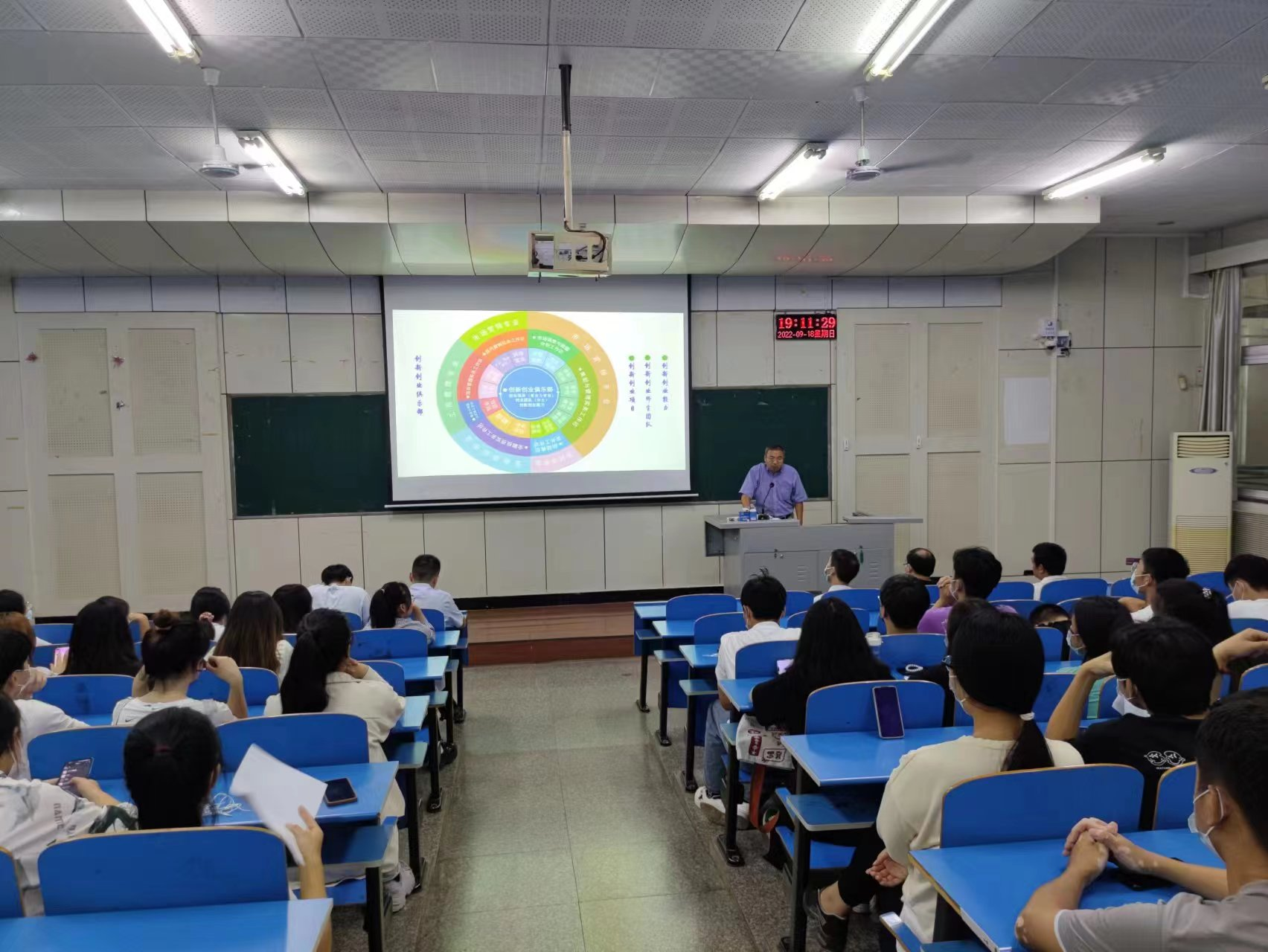 公司于2022年9月18日19点至21点在2206教室进行“‘7+1双创工作坊’育人模式2022训练动员会”。副经理李文同、部分创新创业工作坊(俱乐部)的负责人张营周、李宁、罗晨阳及张玉涛、张逸风、刘文等老师以及2020级会计学、市场营销、工商管理、国际经济贸易、保险学等专业近300余名员工参加,动员会分两场进行。