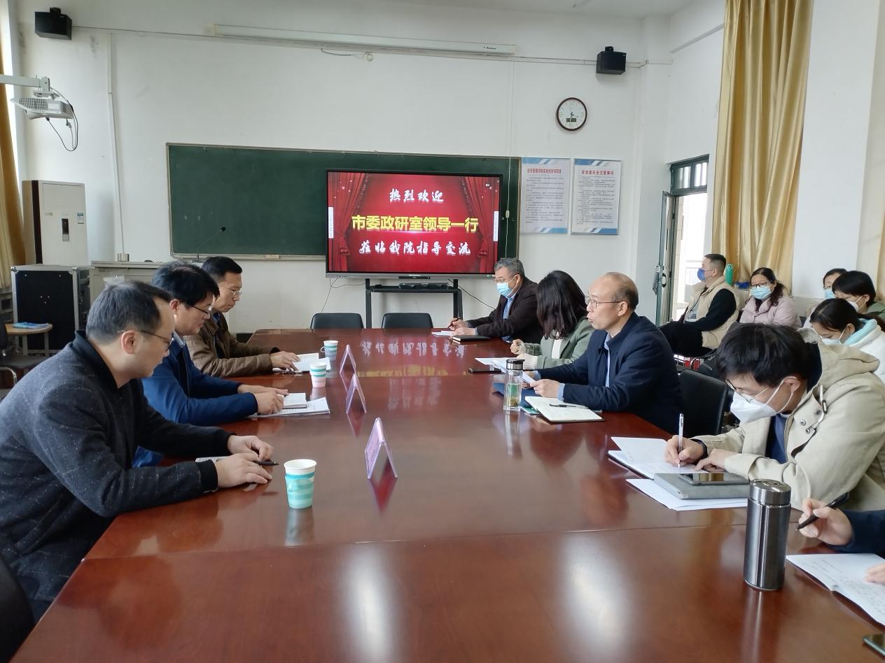 2023年3月2日下午,平顶山市委政研室副主任马灿伟、调研一科科长杜彤、调研二科科长高琛一行来到谈球吧,就如何服务政府决策咨询事宜举行了座谈交流会。会议在1号教学楼1410举行,谈球吧经理张振江、副经理李文同、杨玉敬及谈球吧科研平台团队、专业骨干教师等参加了会议。会议由张振江经理主持。
